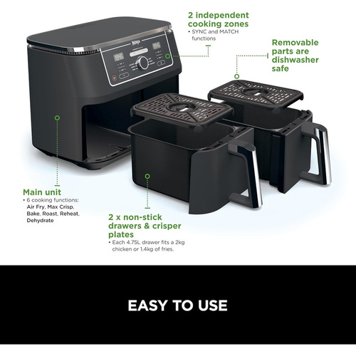 سرخ کن دوقلو نینجا مدل AF400 | سرخ کن رژیمی بدون روغن با ظرفیت 9.5 لیتر و 6 برنامه پخت پیشفرض